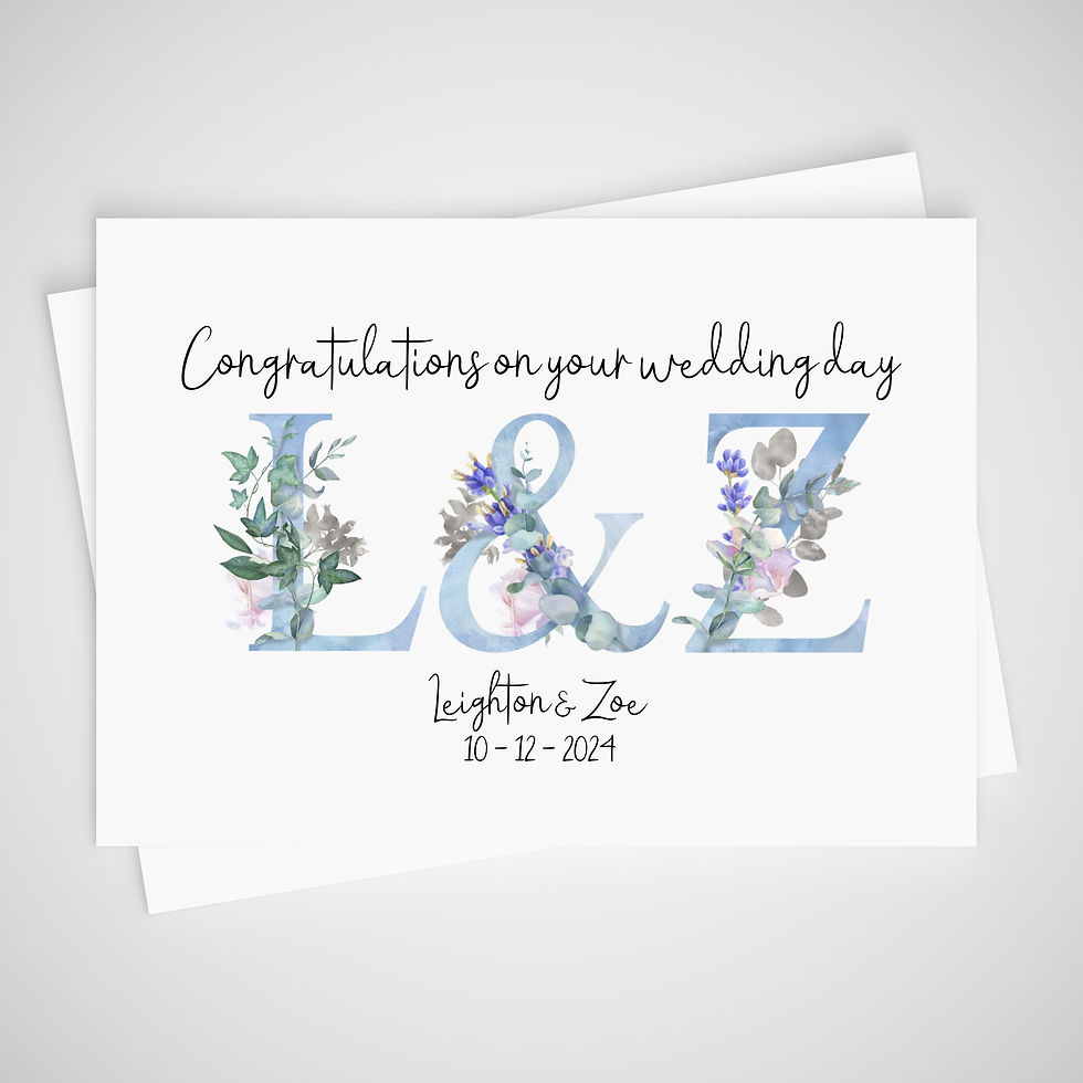 Personalised Wedding Card Monograms Initials Blue Flowers